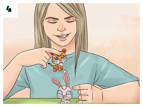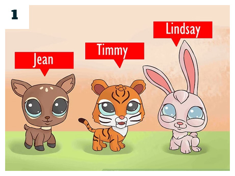 Saml dyr og giv dem navne. Find de dyr, der dækker karakterbeskrivelser (personlighed, efternavn, hvad kan de lide/ikke lide, venner, drømme, forelskelser, historie, fjender, og tid (finder historien sted i fortiden, nutiden eller fremtiden?) og giv dem navne.